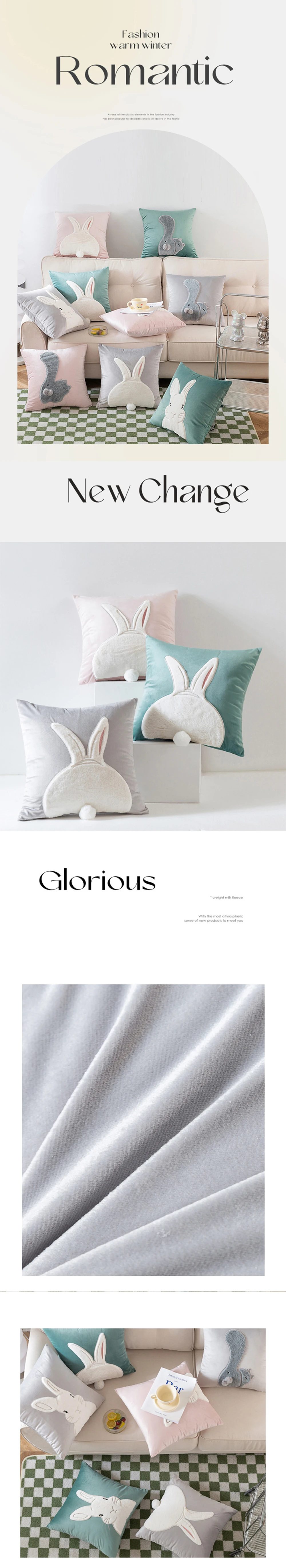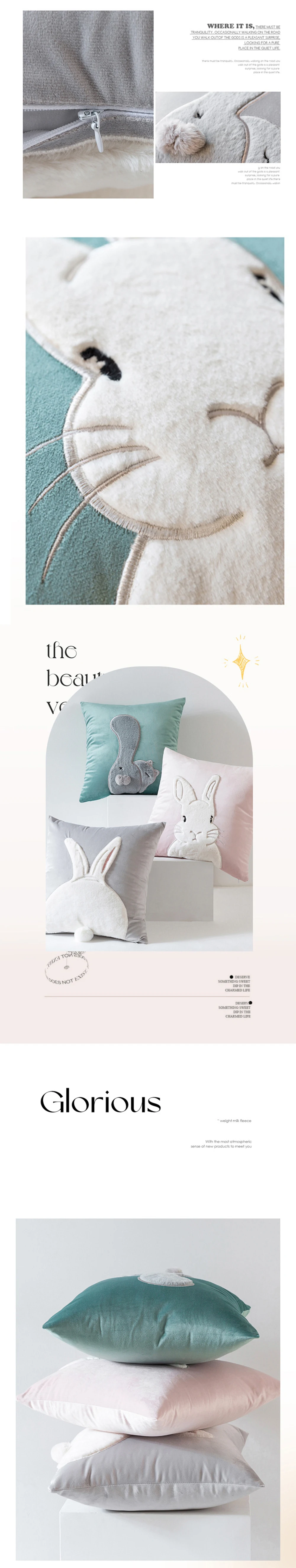 | Product name | Rabbit Design Embroidery Faux Fur Velvet Throw Cushion Cover | Usage | Home Decor Sofa Cushion Cover |