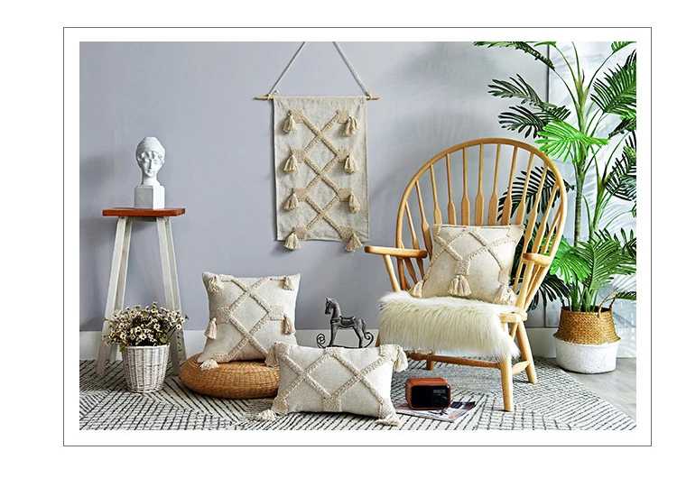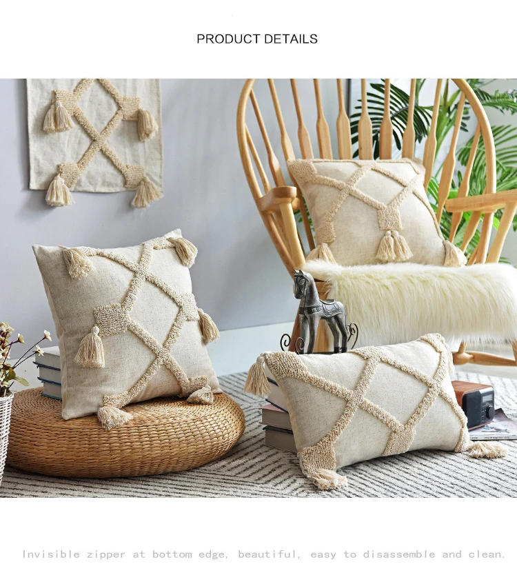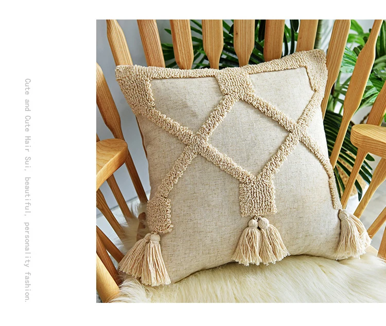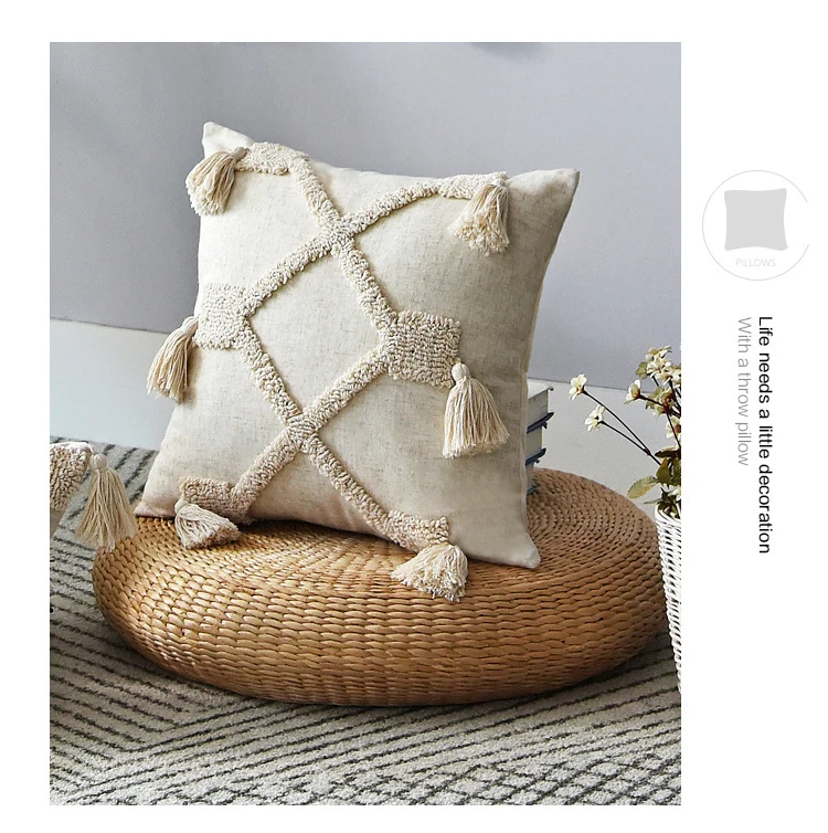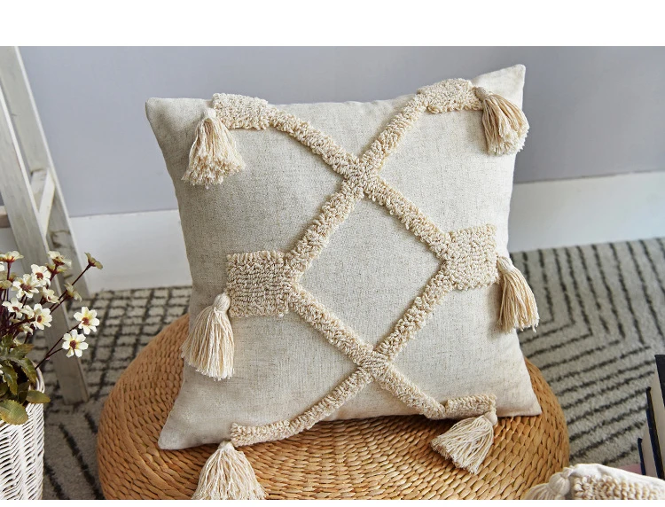 Innermor 18×18 Inch Tufted Cushion with Tassel North Europe Style Home Decor Throw Pillow Case