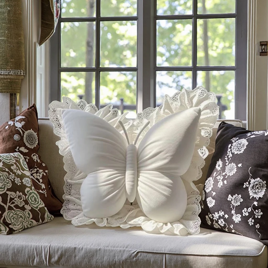 This butterfly lace cushion features delicate and exquisite lace designs. elegant and lively. combined with soft and skin-friendly velvet fabric. adding a unique artistic touch to your home or outdoor decor.