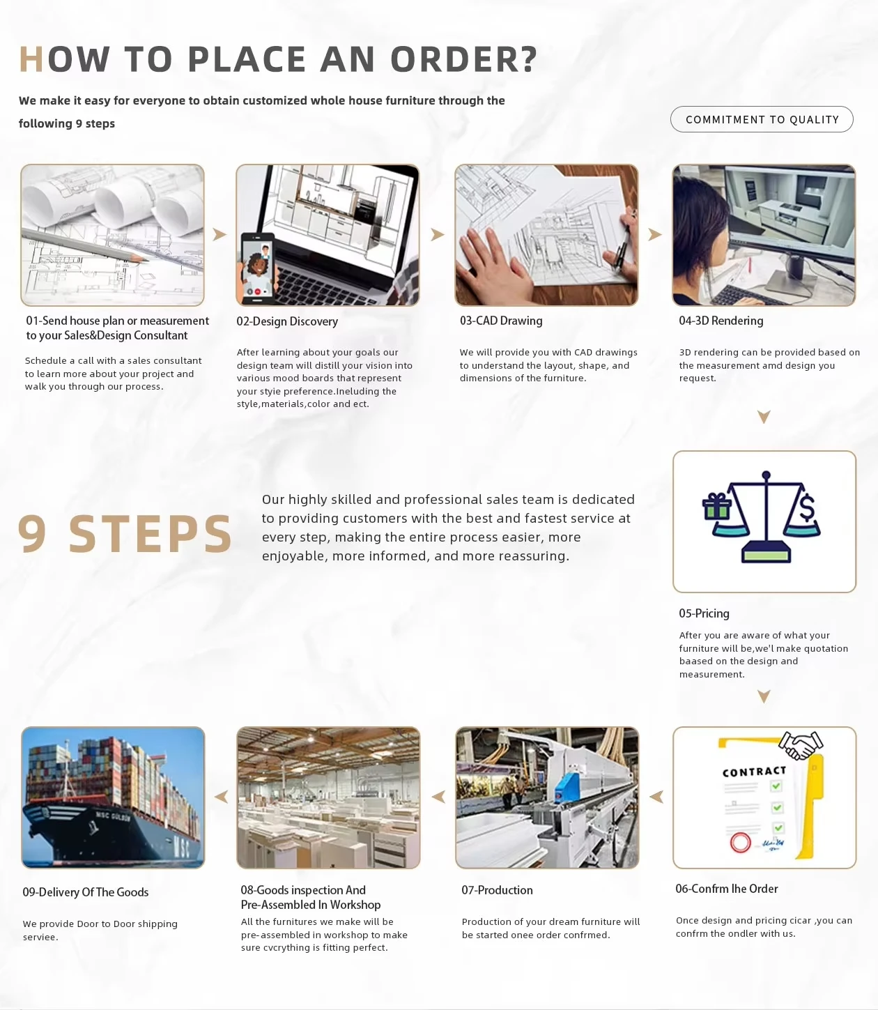 A: Our MOQ is 40HQ ( 20STD acceptable for test order ). you can mix 4-5 designs in 40HQ as long as MOQ at 10pcs/SKU is met. For some stock items . we can lower MOQ to be 5pcs/SKU
